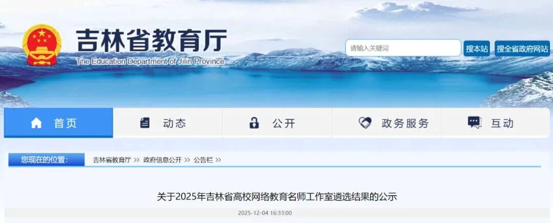 近日,吉林省教育厅发布《关于2025年吉林省高校网络教育名师工作室遴选结果的公示》,我校教师张旭主持的工作室成功获批“吉林省高校网络教育名师工作室”培育单位。